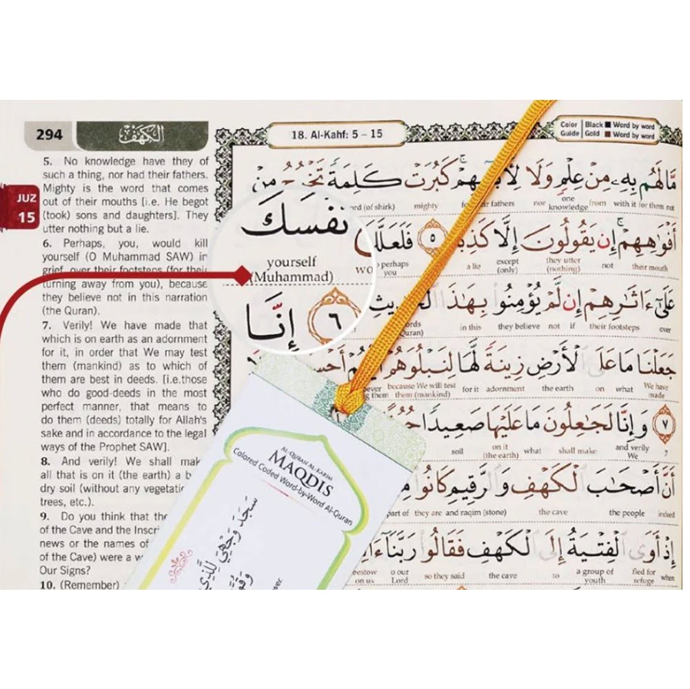 Al-Quran Al-Kareem Maqdis is a translation learning method of word-by-word Al-Quran with every word and sentence is colored differently, in Arabic and English.