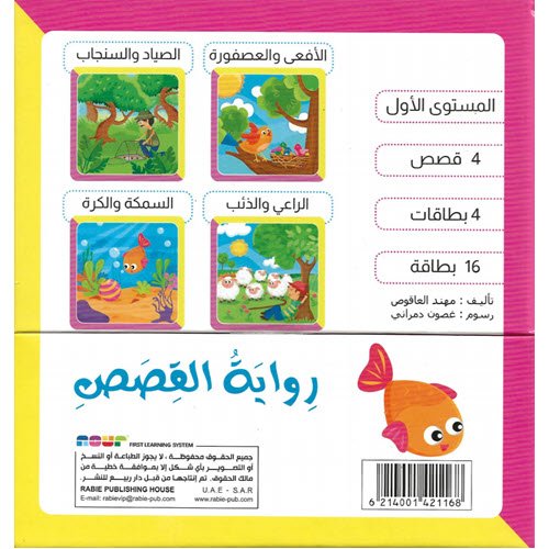 ومن ثم كل قصة منها, مرفقة بأربع بطاقات لأحداث القصة